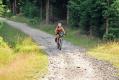 Rozhodli jsme se, že trochu změníme trasu. Zajedeme se podívat do Josefova Dolu. Přijíždíme přes hájovnu Peklo; je to tu jak v pohádce. Jedeme pořád z kopce a otevřelo se před námi krásné místo Čertovy kameny se Skalní vyhlídkou. Chvíli jsme se kochali výhledem. Spustili jsme se do údolí, kam jsme se ze Skalní vyhlídky koukali, teplota o několik stupňů stoupla. Honem zaze do kopců! Přání se nám splnilo. Z Josefofa dolu vede cesta do takového kopce, že mi nestačil převod 2 na 1. Protože mám neseřiditelný přesmykač a jedničku na něm nepřehodím, musel jsem v tom šíleném stoupání zastavit. Zuzanka kolem "přefrčela" s převodem 1 na 1 a zpívala si do rytmu. Vyšplhali jsme opět k protržené přehradě, tentokrát z druhé strany. Vybalili jsme gáblík a poobědvali. Je opravdu vedro, Zuzanka se rozplácla na sluníčku, já šel detailněji prozkoumat torzo protržené přehrady.