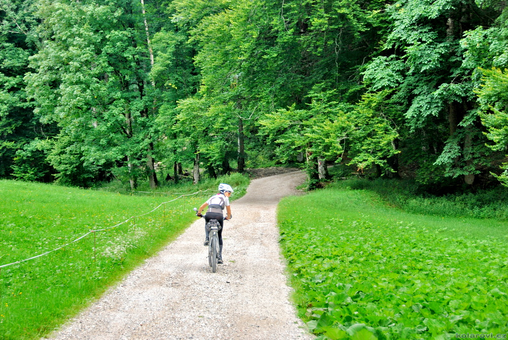 Krátce po poledni jsme na místě, ubytovali jsme se, pomazlili se štěňátkem Eliškou a ve dvě odpoledne vyrazili na první etapu nazvanou Trasa A. Nejdříve šlapeme do 12% kopce do Horní Světlé. Další stoupání je ještě náročnější. Lesní cesta je totálně rozm*daná od lesních dělníků, všude se válí neuklizené větve, úplná zkáza. Ovšem další putování nás za toto utrpení odměnilo krásnými výhledy. Dorazili jsme na železniční zastávku Jedlová, kde funguje typická nádražní hospoda s parádním fazolovým gulášem a pitelnými Svijany. Kávička pro Zuzanku je taky tradiční - turek. Když jsem se ptal kypré paní hostinské, jestli náhodou nemají nějaký salát, dostala záchvat smíchu, že TOHLE fakt nevedou. A protože jsem byl rychlý, vyfoukl jsem poslední porci guláše úartě cyklistů, kteří dorazili spolu se mnou. Kestolu si k nám přisedli dva stařečci na výletě. Dozvěděli jsme se, že pán oslavil osmdesátiny. Klobouk dolů, vypadal skvěle a jeho babka taky!