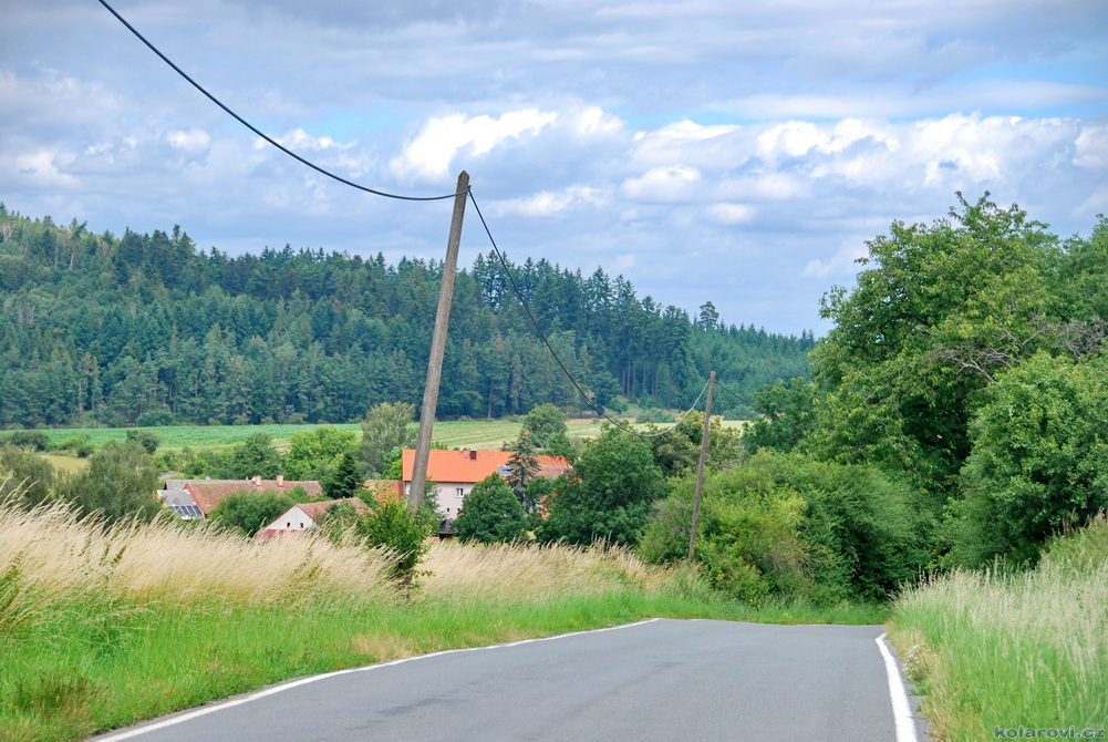 Hned z Říček nás čeká dva kilometry stoupání, za které je nám odměnou první krásné výhledy. Následuje sjezd do Nebeské Rybné, trochu stoupání, pak sjezd po červené, lesem, je to tu moc hezké. Dojeli jsme do Pěčína, kde jsme narazili na hospodu se zvláštním názvem BAR-FüD. Inzerují zde americkou a mexickou kuchyni. Absolvujeme naše klasické občerstvení, pivo, v tomto případě Kozel a kávička. Ještě nás čeká stoupání Julinčiným Údolím, na to reagovala obsluha hospody slovy: "Jó, Jůlinka..." a významným pozvednutím obočí. Čekali jsme nějakou hrůzu, ale opak byl pravdou. Sice táhlé a dlouhé stoupání s mlatovým povrchem, ale jelo se dobře, žádný horor.