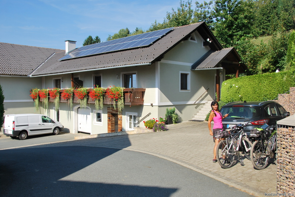 Na závěr dovolené jsme vybrali jih Rakouska, kousek od Slovinských hranic samotu Schwalbenhof, která je součástí St. Stefan im Rosental. Ubytování je lexusní, se saunou, bazénem a příjemnými domácími. Jako "welcome drink" jsme dostali jejich domácí džusy, které jsou moc dobré. Výlet se také moc povedl. Nádherné výhledy, malebné rakouské vesničky a samoty roztroušené po kopcích. Jediné, co chybí, jsou hospody. Poslední záchrana měla být hospůdka tři kilometry od cíle, dle strýčka Gůgla měla být otevřena, jenže do 12.9. (včetně) dovolená. Zuzanka mi od hospodské, která už byla v "práci", ale neměla otevřeno, mi vyprosila alespoň pivo.