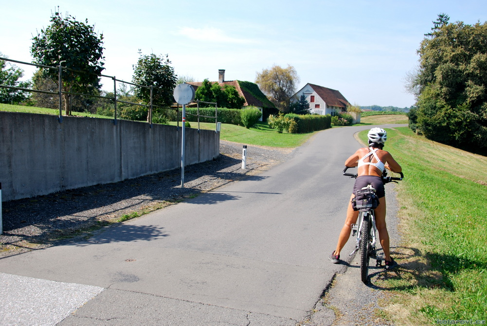 Druhý den, druhá trasa. Včera byl směr východ, dnes je směr jih. Cesta je podobná jako včera, krásné výhledy, nahoru dolů, malebné a upravené vesničky. Dnes jsme narazili na otevřenou hospodu, která dle recenzí je rodinná hospoda s výborným jídlem. Byla to pravda, milá obsluha, výborné jídlo i pivo. Knedlíčková polévka, variace salátů, všeho hodně, že byl problém to sníst. Napapaní (přepapaní) vyrážíme na závěrečnou část cesty.