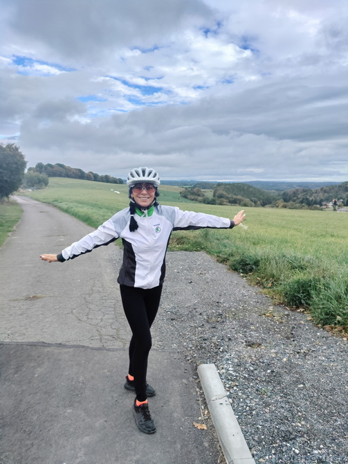 Ráno po vydatné snídani asi v půl jedenácté vyrážíme domů. Tatínkové s holčičkami už na snídani jsou a holčičky jsou rozesmáté, asi se jim mrazivá noc ve stanu líbila. Opravdu se ochladilo, v noci bylo na nule, teď je kolem 5 °C, paní vedoucí se na nás tak trochu nevěřícně dívá a ptá se, zda to myslíme vážně. Myslíme. Nejdříve stoupáme do Pyšel, pak je to jako houpačka, nahoru dolů a zase nahoru. Kolem Kamenice míjíme krásné rybníčky, pak opět stoupání. První "horské" vyvrcholení si užila nejen Zuzanka, ale i já, protiže jsme zakotvili v hospůdce U Zdenky. Dvě velmi prostorově výrazné hostinské (evidentně matka s dcerou) se míhaly po place a v cukuletu máme na stole kulajdu, pivo a zelený čaj. Na polévce jsem si opravdu pochutnal. Čeká nás sjezd do Psár. Je to celkem vyživné, kořeny, bahno, spadané listí, ovšem všechno jsme zvládli a míříme k Horním Jirčanům. Kroužíme kolem nich, po trase, kterou jedeme poprvé. Po párset metrech cesta mizí, samé šípky, bahno a kopřivy; je to zábavné. Jedeme dál, míjíme hospodu na Kocandě, kolem Průhonicé zahrady až na Šeberov, kde je otevřený stánek u minigolfua dalších sportovišť. Krátce zastavujeme na pivo a zelený čaj. %Ceká nás závěrečný finiš přes Krčák a jsme doma. Bylo to super!