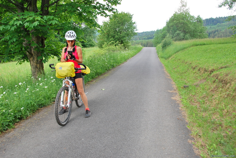 Vstáváme brzy, kolem sedmá hodiny. Chceme vyrazit dříve, protože nás čeká náročná trasa cca 50 km s převýšením přes 800 m. Podařilo se, v 9:15 jsme v sedlech. Je celkem zima, ale vyšlo slunce a teplota utěšeně stoupá. Čeká nás trasa do Jeseníku, cesta malebná, louky, ovce, výhledy na hory. Míjíme "středisko" pravověrných bikerů Singltrek Rychlebské stezky, sjíždějících místní singtreky. Ujeli jsme jim a stoupáme kolem zatopených lomů. Cesta je horší a horší, chvílemi se ztrácí v bahně mezi kopřivami a ostatní lebedou. Nemohu chytit rytmus, musím i potupně místy tlačit. Naštěstí se cesta asi po kilometru zlepšila alespoň na šotolinu. Dojeli jsme k dalšímu zatopenému lomu, který se jmenuje Arcibiskupský. Začíná krápat a pořád stoupáme.