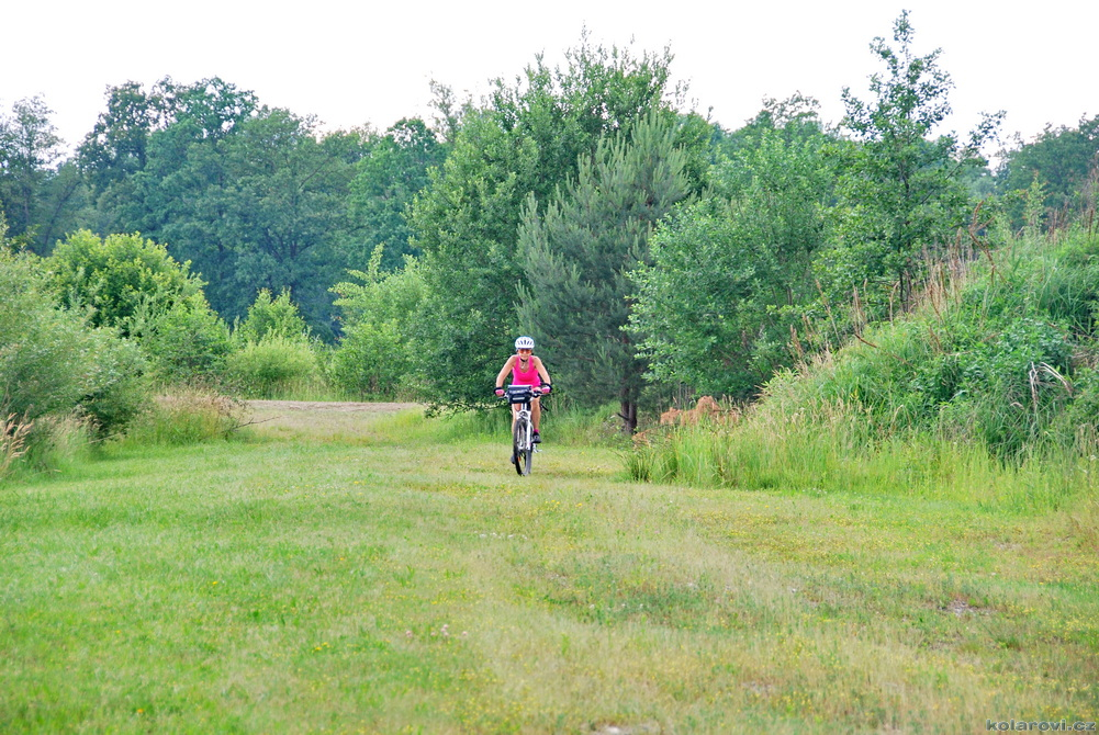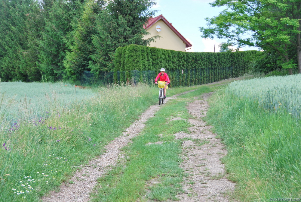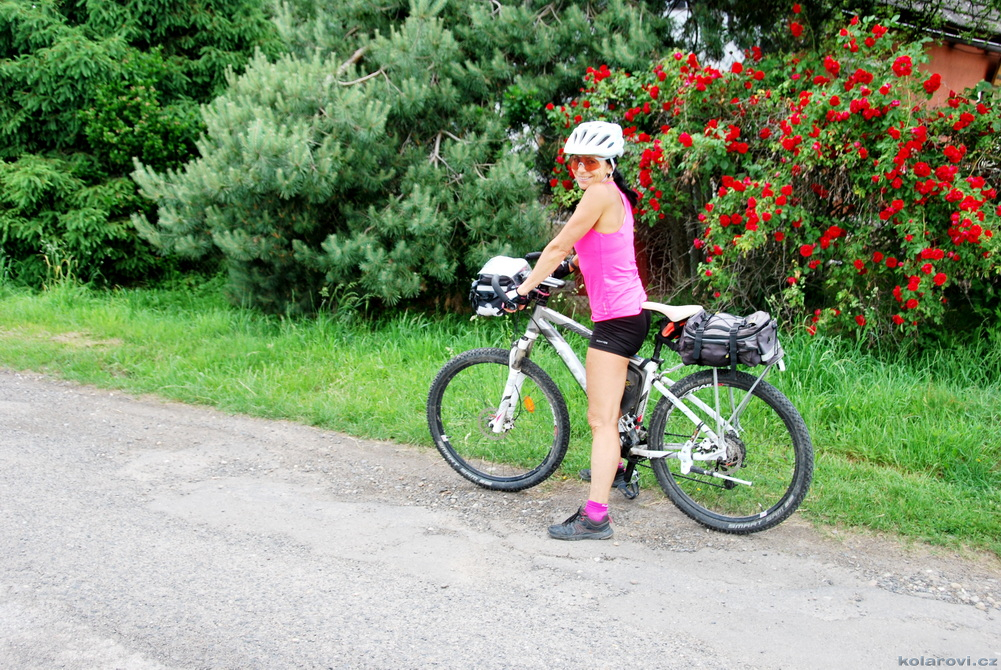 Od rána svítí slunce, vypadá to na teplý a sluneční den. Vyrážíme opět brzy, v 9:05 hod a hned stoupáme 3,2 km ostrý kopec, místy až 17% stoupání, převýšení přes 200 m. Cestou z kopce jsme si prohlédli historickou ruinu vápenky v Supíkovicích a pokračujeme přes Hradec-Nová Ves, Kolnovice až do Polska, kde jsme nejdříve projeli neuvěřitelně dlouhou obec Gierałcice, v Biskupowě jsme se vysápali po žluté turistické na kopec s krásným rozhledem po kraji. V Nadziejówě jsme se svezli po modré až do Łąky, kde začalo pršet. Cesta je naplánovaná přes oblast zatopených pískoven, bláhově jsem si myslel, že to bude turistická oblast, ovšem skutečnost byla zcela jiná. Stále zde probíhá těžba písku a štěrku, několikrát nás po rozblácených cestách honily rozběsněné náklaďáky a do toho prší a prší. Přesto jsme zastavili abychom se trochu najedli, Zuzanka už dostávala "hysterák" z hladu. Jídlo nám trochu zlepšilo náladu i přes to, že jsme se málem utopili v bahně, cesta v mapě, kterou jsme jeli a prodírali jsme se jako přes spáleniště a krvavé řeky, se ukázala být zabahněná, rozmáčená a rozježděná těžkou technikou. Přežili jsme, sice trochu od bahna, ale míříme po cyklostezce do Vidnavy a Velké Kraše, kde se těšíme na hospodu U Sysla, která je, jak jinak zavřená. Nicméně se hodná paní hostinská slitovala, natočila nám pivo a Zuzance sodovku a ještě spolu s panem hostinckým s námi pěkně pokecali.