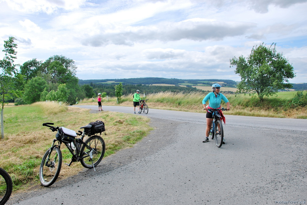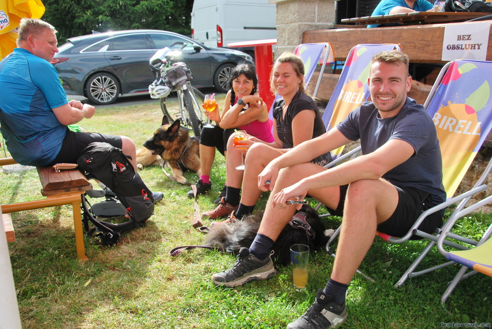 Z Přeštic se vydáváme přes Libákovice a Letiny až na dnešní nejvyšší vrchol 624 m.n.m., mezi vrcholy Čihátka a Buč, kde jsme už jednou byli, tentokrát jsme přijeli z druhé strany. Při sjezdu nás čekal další krásný výhled na Žinkovy, rybník Labuť a zámek, na závěr taková malá odměna. Poslední kopec ze Žinkov a dojezd do kempu. V hospodě už byli ostatní a tak jsem jen slezl z kola a přidal se. Dámy popíjely Aperol, pánové pivo i k nějakému panáčku došlo a večer jsme udělali poslední ohýnek, kde jsme odhalili kdo byl jaká postava z Černých baronů.