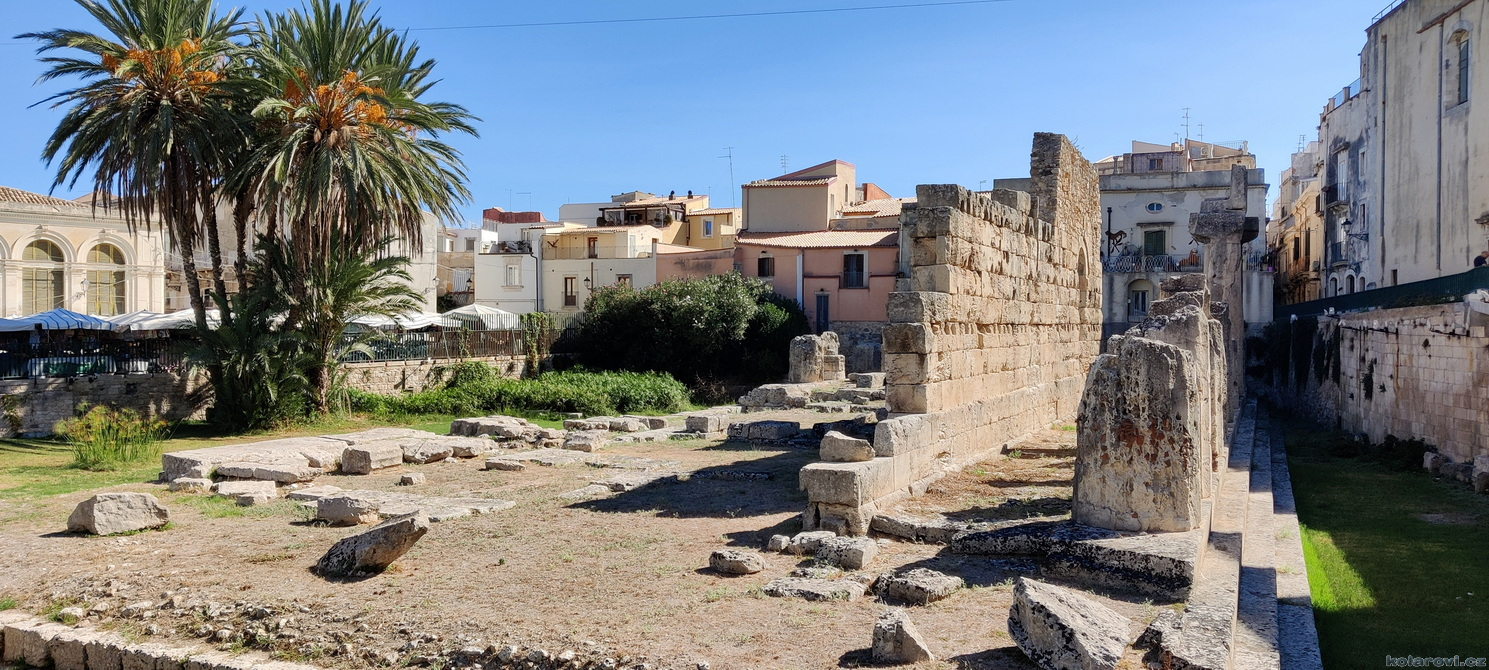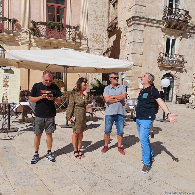 Naučnou procházku jsme začali u Apollonova chrámu a pokračujeme až k Castello Maniace, což je impozantní švábská pevnost, která pochází z roku 1232. Cestou jsme se například zastavili u fontány Arethusa, u pramene sladké vody, jediného místa v Evropě, kde roste papyrus. Podél moře se vracíme k zaparkovanému autu abychom pokračovali dále v naší dnešní krasojízdě.