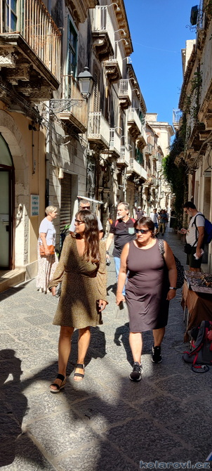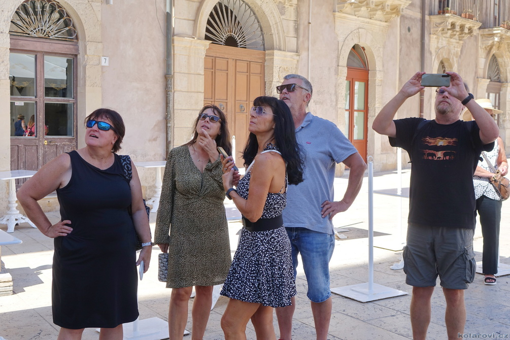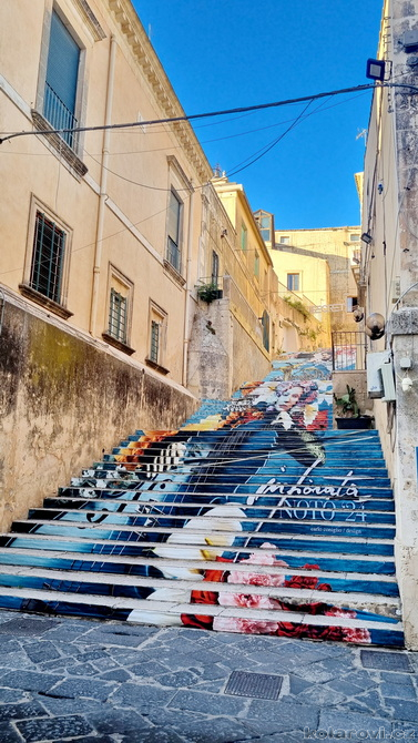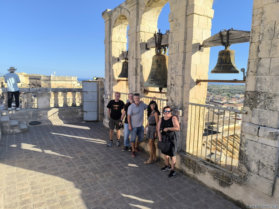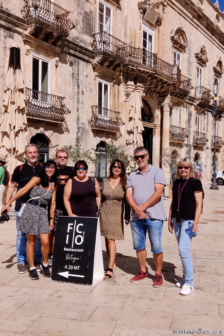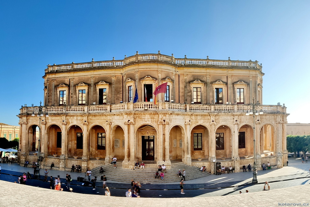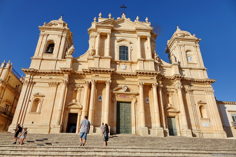Třicet dva kilometrů od Syrakus leží město Noto, které bylo v roce 2002 se svými barokními stavbami (spolu s dalšími sedmi východosicilskými městy) zařazeno na Seznam světového dědictví UNESCO. Noto na vás dýchne historií, která je všudypřítomná a je umně spletená se současností. Je tu dost turistů z celého světa, kteří vytváří živý kolorit města, stejně tak místní, kteří i v říjnu pořádají nejrůznější trhy a akce pro turisty. Obdivovali jsme barokní architekturu, která je jiná než u nás, zde v baroku zůstalo poměrně dost prvků z renesance. Vylezli jsme na zvonici kostela San Carlo al Corso a obdivovali panorama města. Nakonec jsme si prošli úzké uličky a obdivovali barokní krakorce balkónů, které jsou pověstné a celosvětově proslulé. Kolem šesté hodiny pozdního odpoledne nasedáme do našeho "autobusu" a čeká nás přes dvěstě kilometrů cesty na Karlovu chatu do Grotte.
