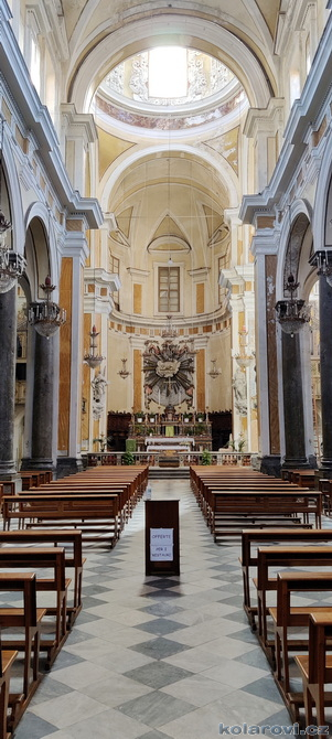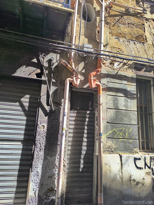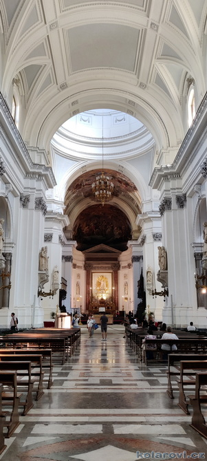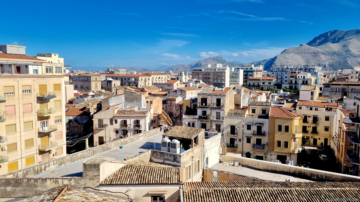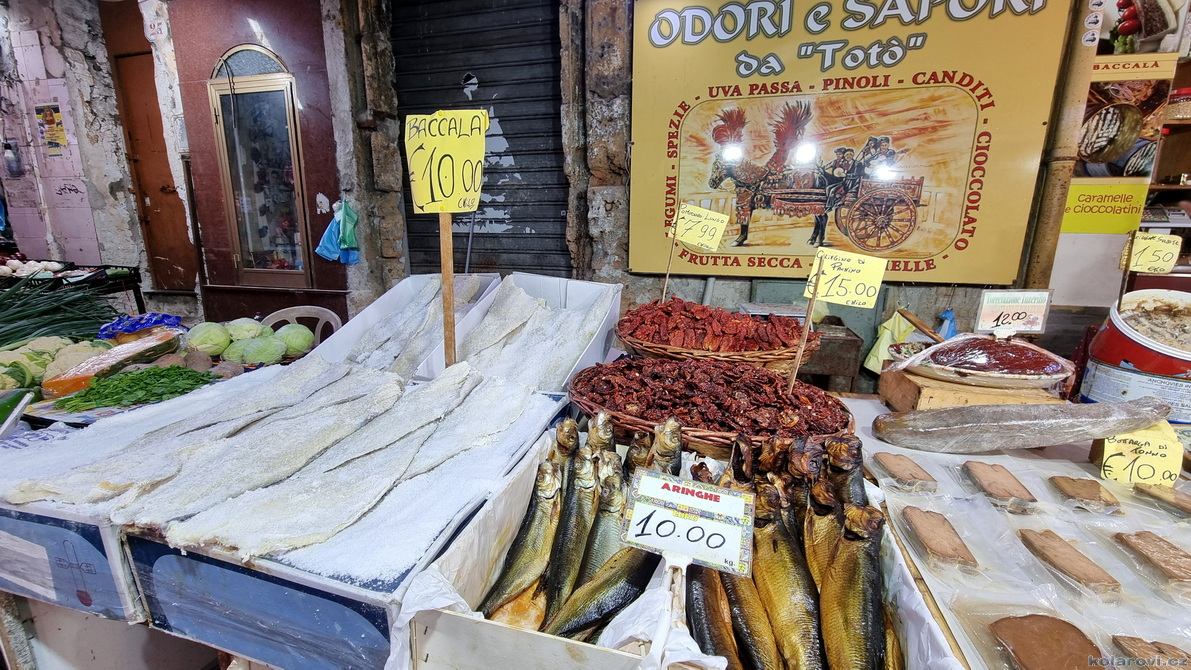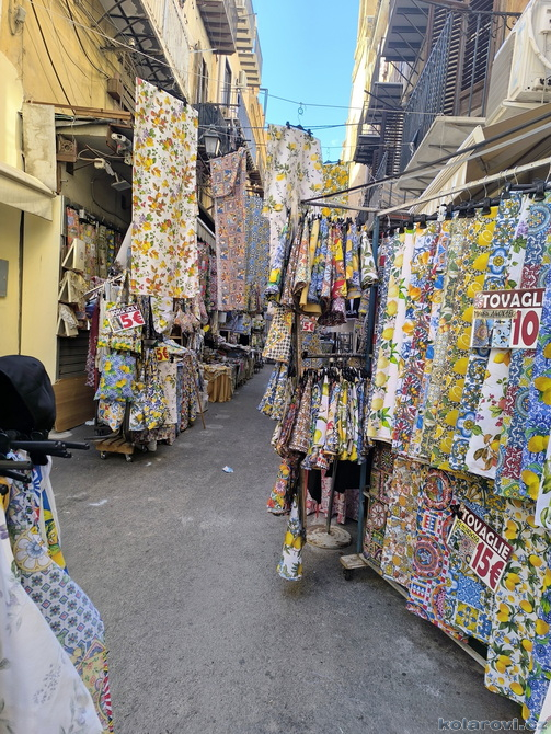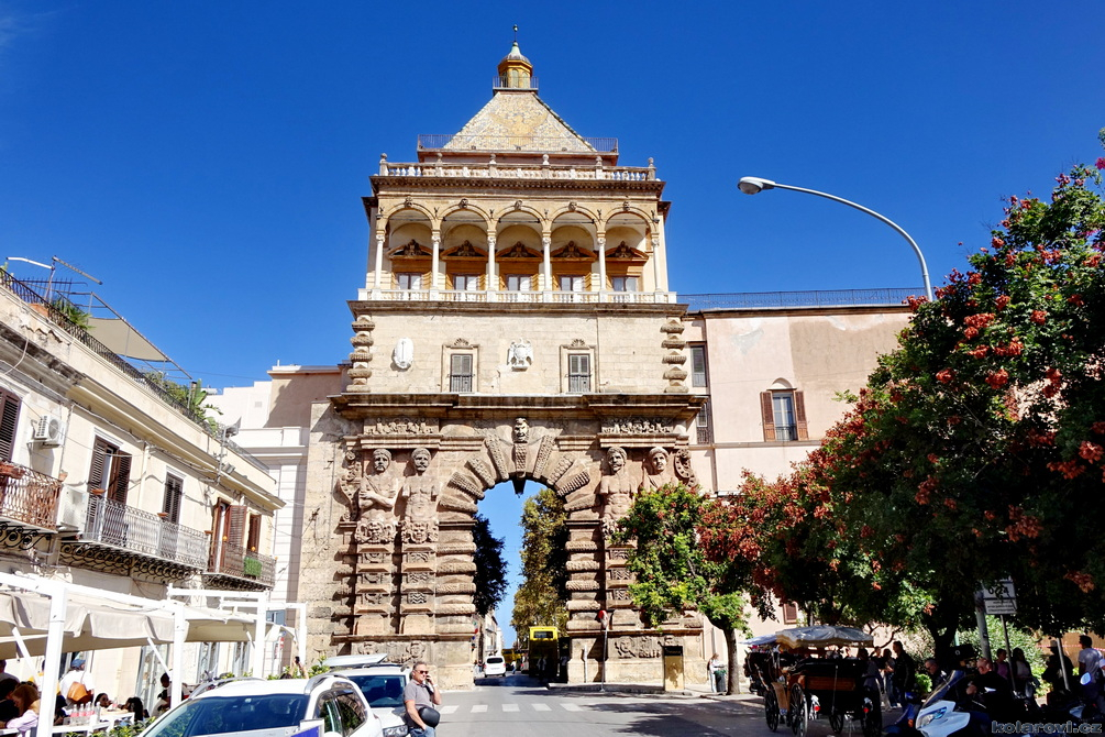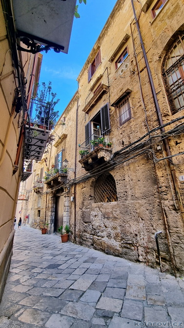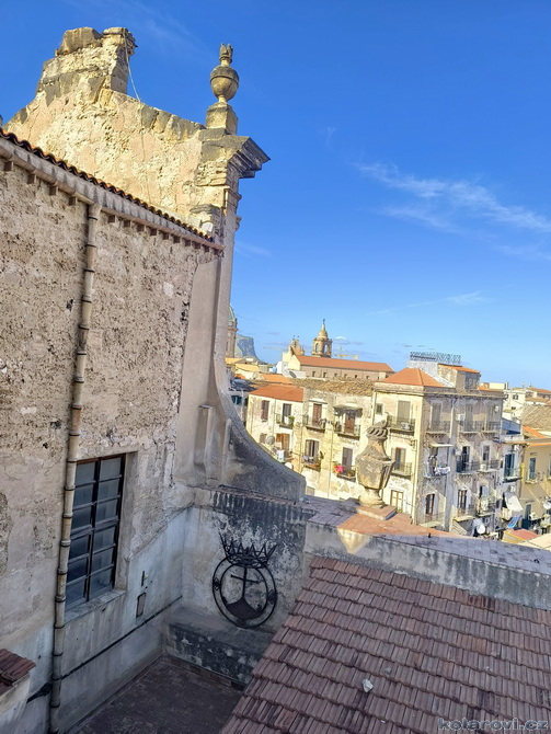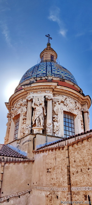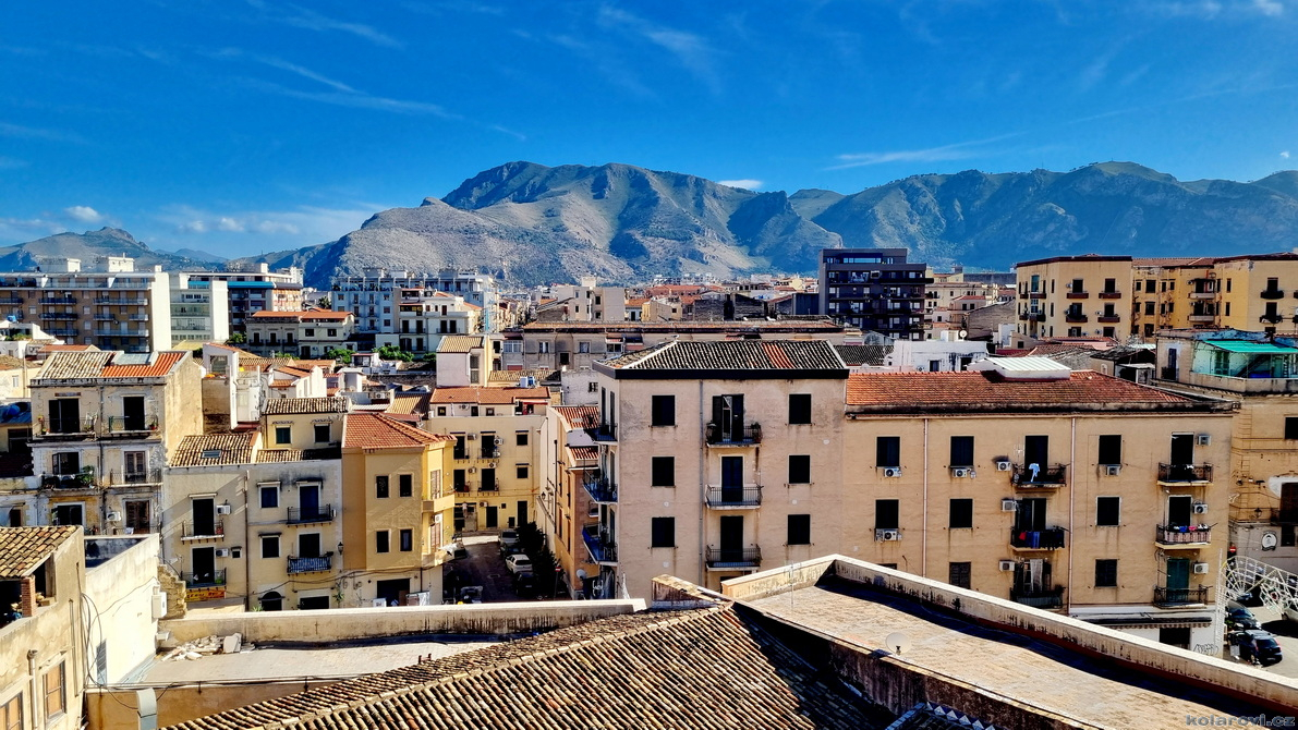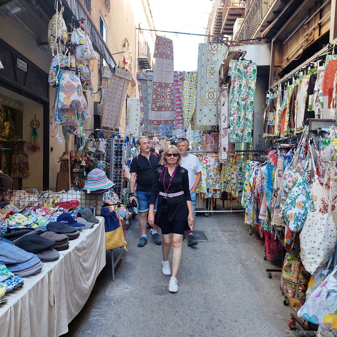 Najedení a spokojení pokračujeme v naší krasojízdě ke kostelu Carmine Maggiore, kde jsme vylezli na zvonici a prohlédli si Palermo z výšky. Úchvatná podívaná! Prošli jsme místním trhem, na kterém převažovalo jídlo všeho druhu a pokračujeme kolem kostela Ježíše Krista (Chiesa del Gesù), známým také jako Casa Professa. Jedná se o nádherný příklad pozdně manýrenistické a barokní architektury v Palermu. Pokračujeme na Via Maqueda, po které jsme došli na Quattro Canti, ikonické osmiúhelníkové náměstí, které je také známé jako „Teatro del Sole“ (Divadlo slunce) díky charakteristickému dennímu osvětlení, je proslulé svými čtyřmi barokními fasádami zdobenými fontánami, sochami ročních období, španělskými králi a palermitanskými patronkami. No a to je pomalu konec prohlídky. Dorazili jsme k "autobusu", trochu nervózní, jak to přežili pejsci. Dopadlo to dobře, Fjord i Zweite vyskočili z kufru jako čertíci, vychlemtali vodu, kterou jsme jim sehnali a my můžeme pokračovat v krasojízdě.